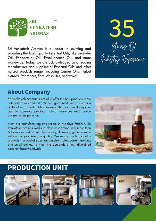 Bề dày lịch sử: Đây là một trong những nhà sản xuất tinh dầu và hương liệu lâu đời nhất tại Ấn Độ với hơn 35-38 năm kinh nghiệm (thành lập từ khoảng năm 1987).